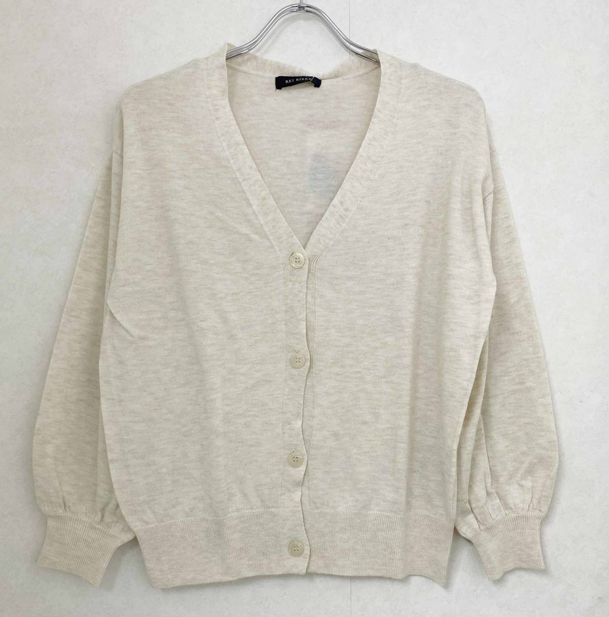 - 新品 M ★ コストコ REI RISEE Vネック カーディガン アイボリー 綿混 シンプル バルーン袖 コットン ショート丈 ベージュ レイリーゼ