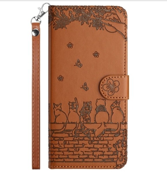 - Galaxy S21 5G 手帳ケース ブラウン チョコブラウン 猫 ニャンコ