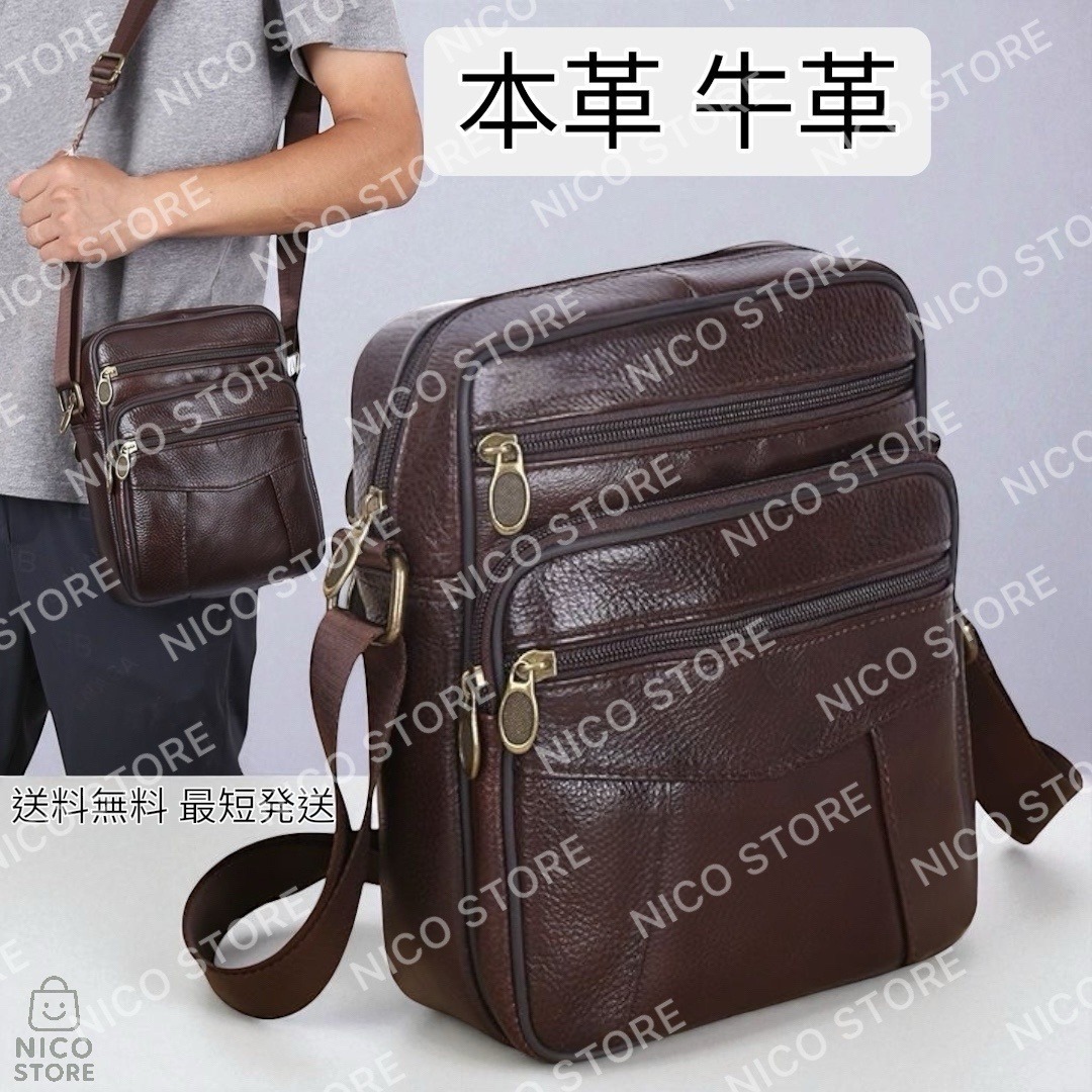 - ショルダーバッグ 牛革 本革 上質 斜めがけ 肩掛け ショルダー メンズ 紳士 軽量 高品質 ビジネス 通勤通学 新品 茶色 送料無料 最短発送