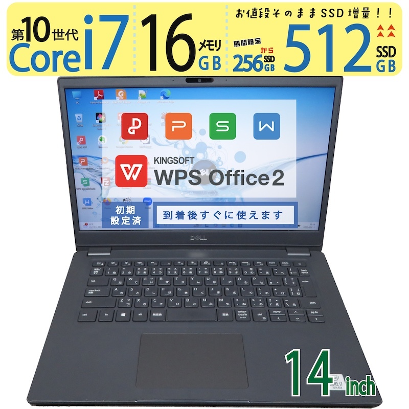 > 【高速10世代CPU・i7・カメラ搭載】◆ Dell Latitude 3410 / 14型 ◆ 高性能 Core i7-10510U / 512GB SSD / 16GB ◆ win11 / Office