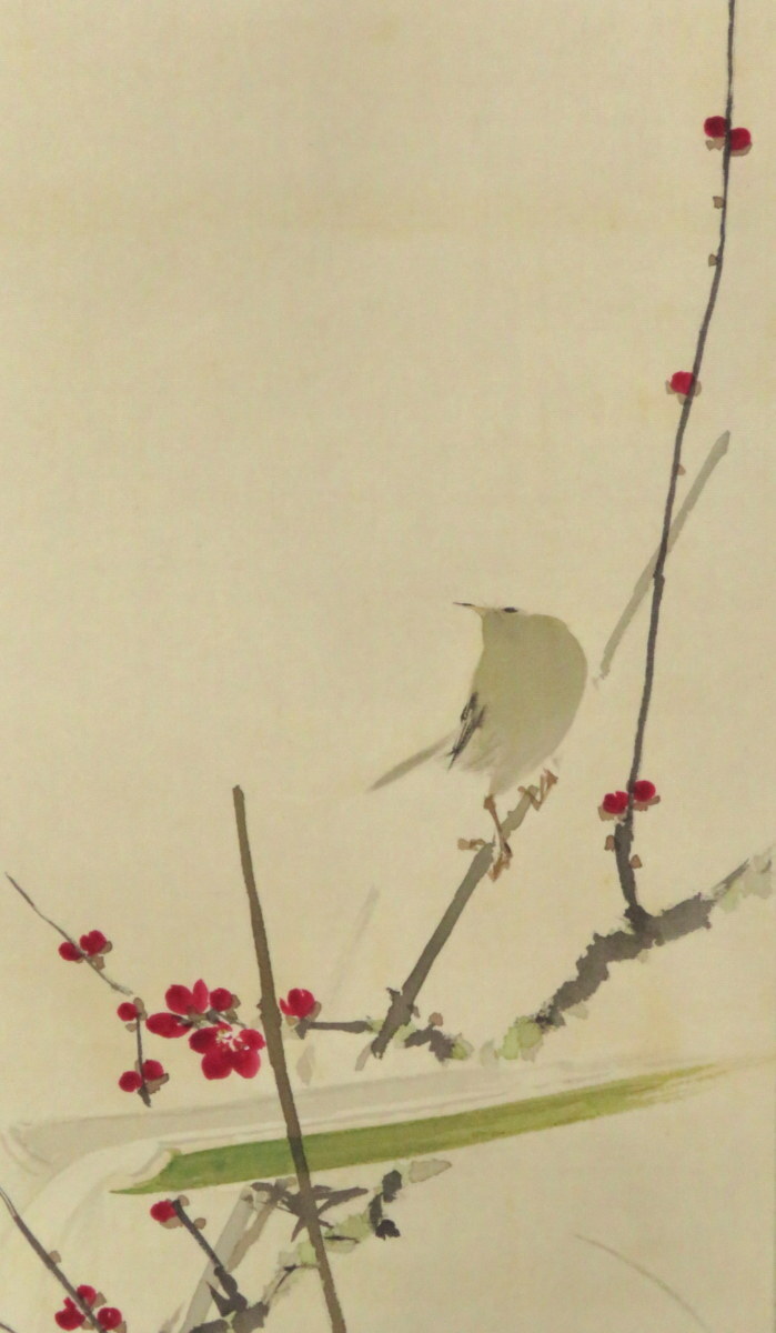 - ◆◇掛軸 須磨対水 筧(紅梅に鶯) 尺巾 物故作家掛軸 hanging scroll◇◆正月 早春 茶道 日本画 JY1546