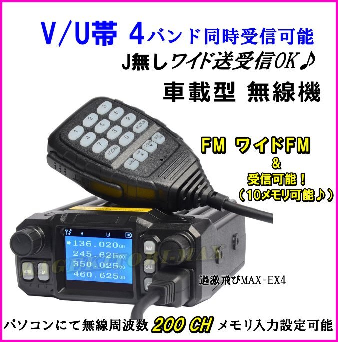 > 【EX4】V/U帯 4バンド同時受信可能 Jなし ワイド送受信♪12V用シガライター付 車載型 無線機 新品 過激飛びMAX /モービル機 FM&ワイドFM