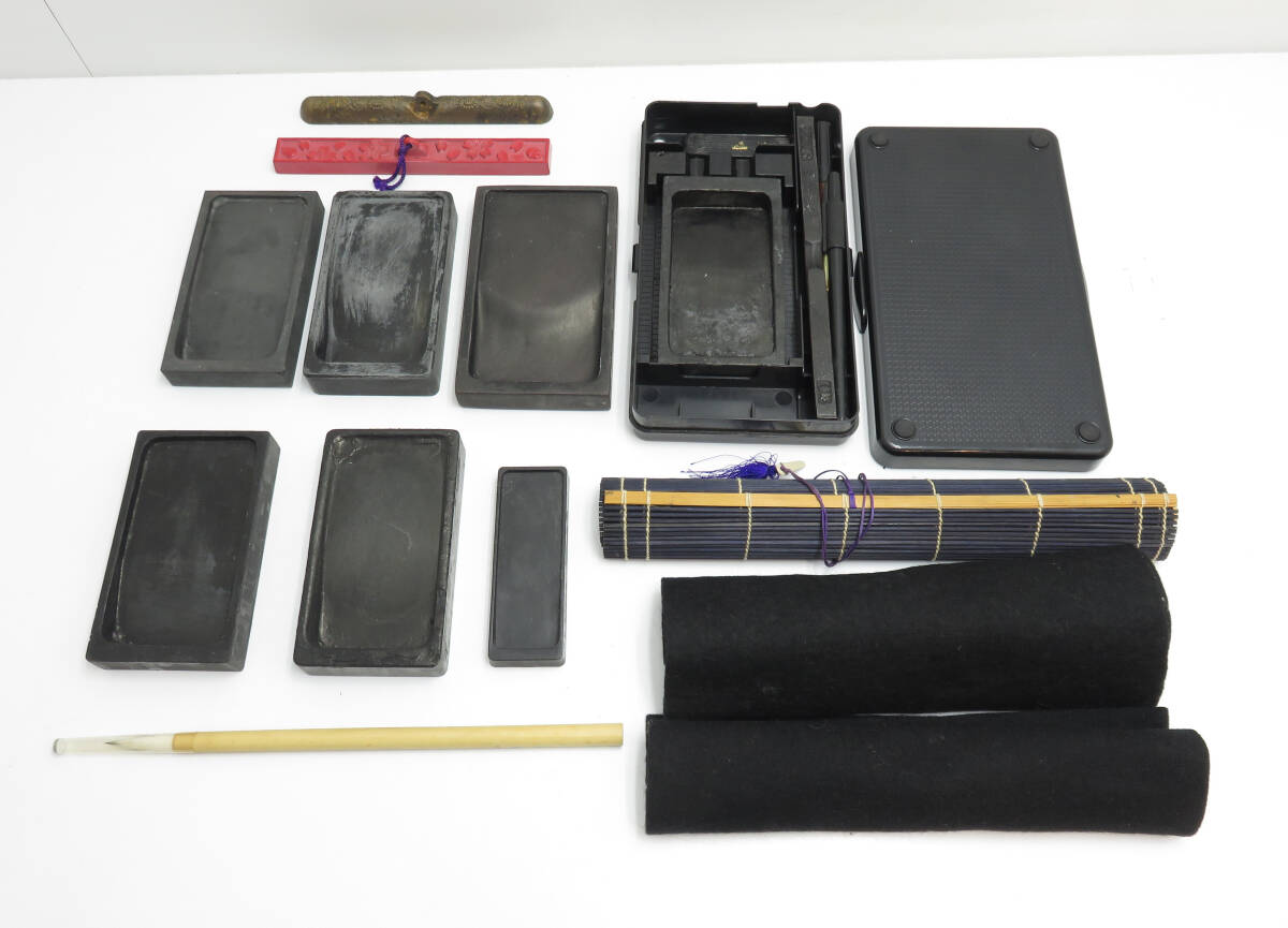 - ☆書道具まとめ 硯 すずり 文鎮 筆 古墨 筆巻き 下敷き 毛筆 書道具箱 書道用品
