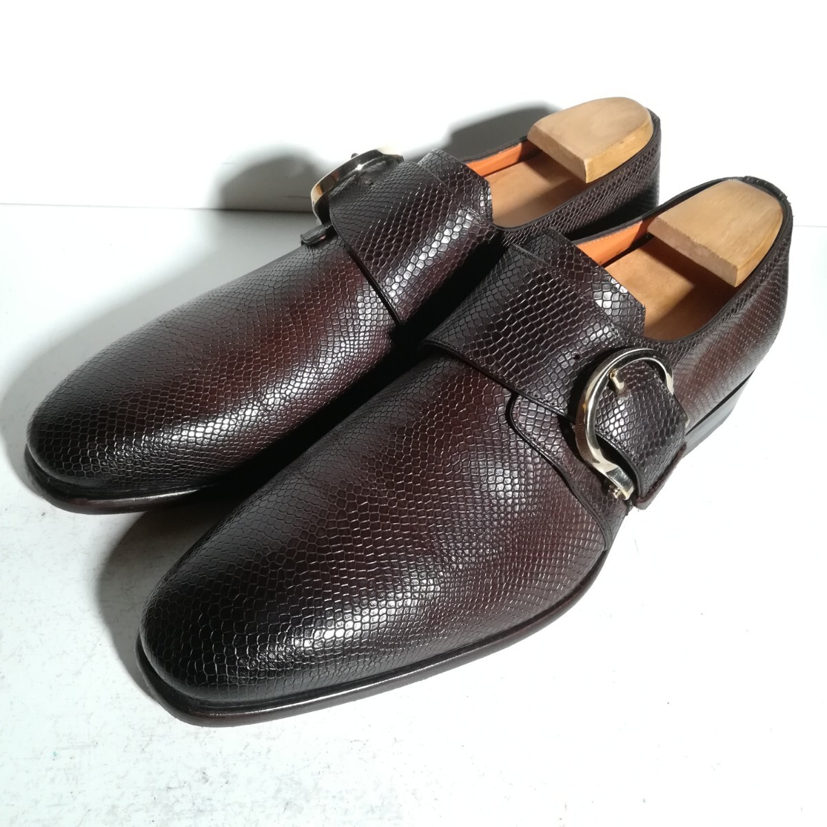 - d0154 【美品】 ★サントーニ Santoni★ 16286 モンクストラップ 8 茶 ブラウン ドレスシューズ ビジネス 高級革靴 紳士靴