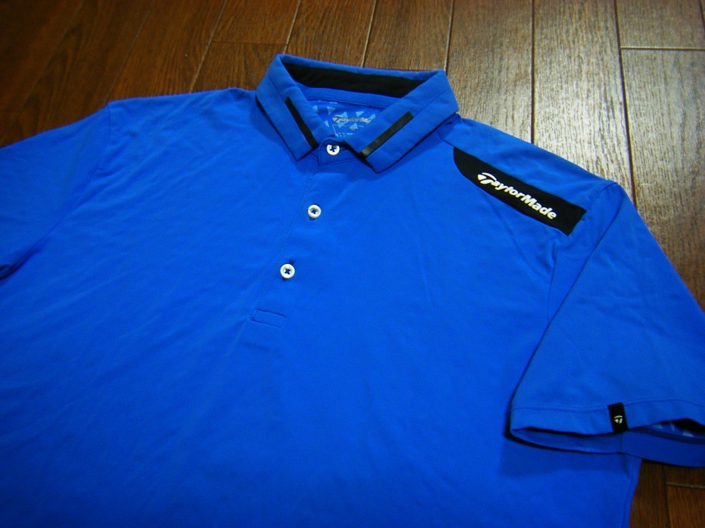 - 伸縮/良質品〇テーラーメイド シャツ M 薄手 同色3Dドットデザイン ラバーロゴ ブルー