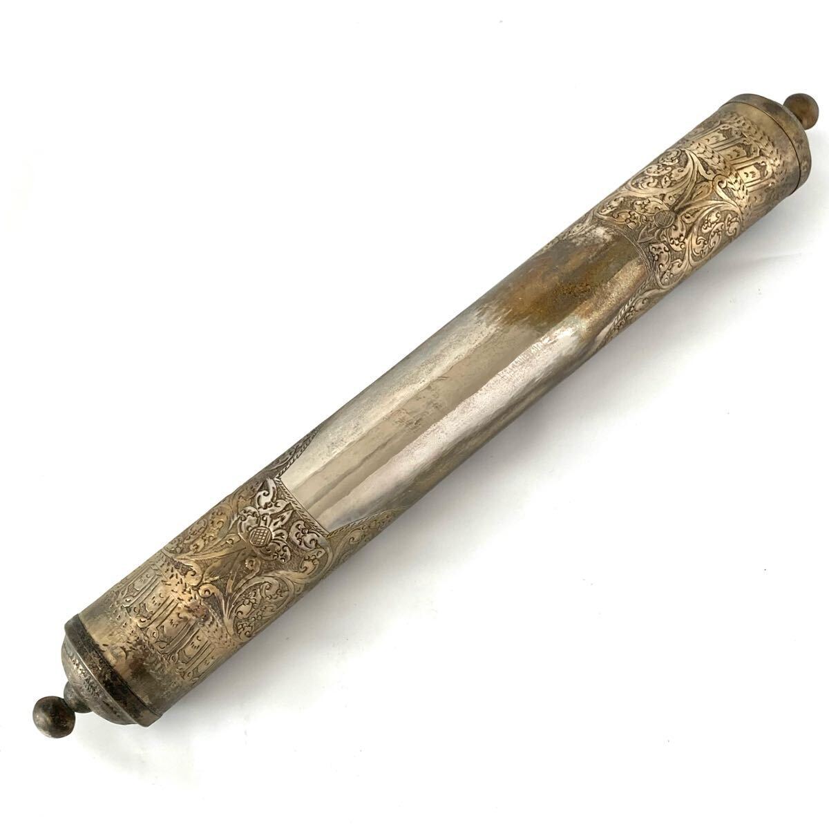 - ヴィンテージ金属製スクロールホルダー経筒 書類入れ金属工芸アンティーク丸筒インテリアオブジェ入れ物小物入れ賞状入れ巻物入れ