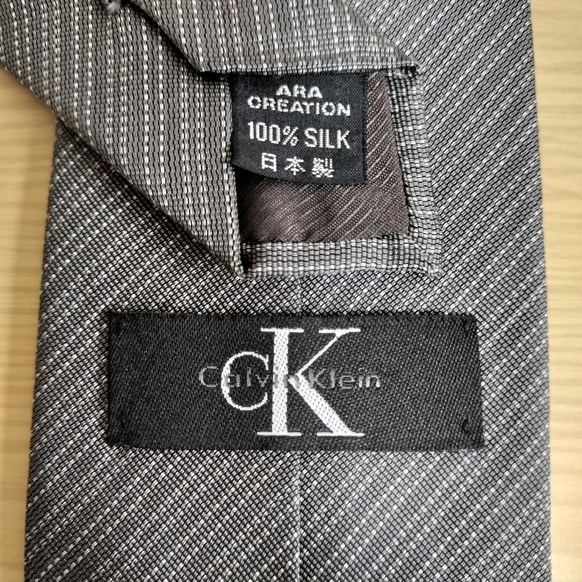 - カルバンクライン(Calvin Klein)灰色点々線ストライプネクタイ