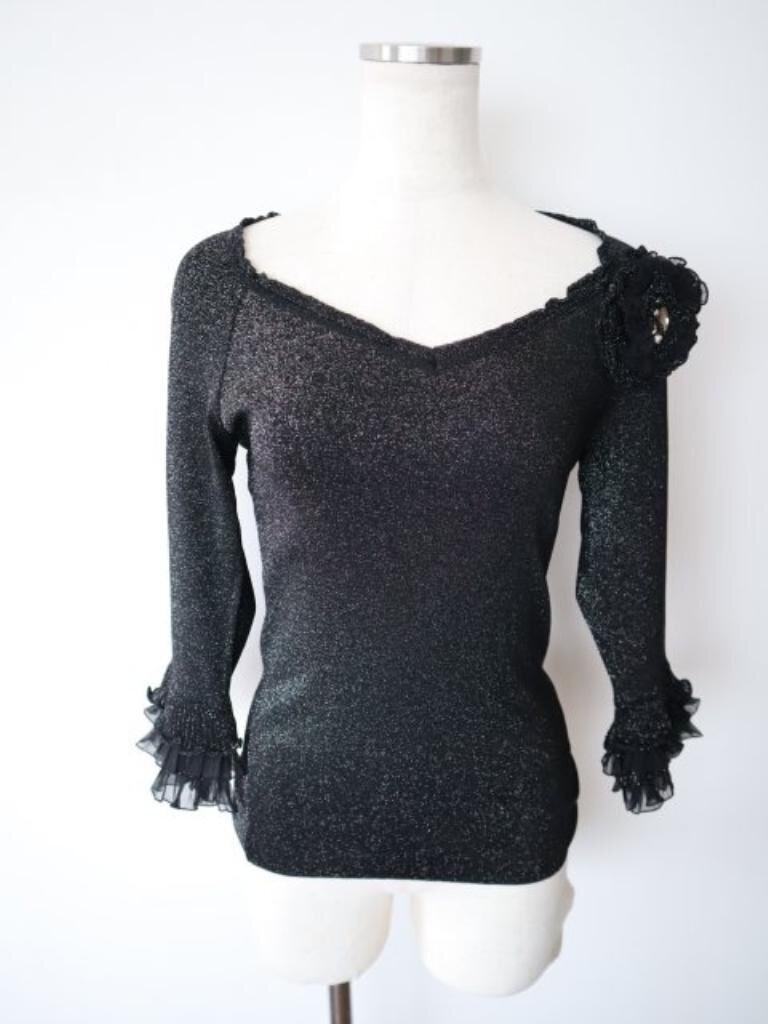> 【送料込】EPOCA エポカ カットソー 40(M相当) ブラック ラメ入り 長袖 上品 綺麗め 大人 おしゃれ お出掛け 6458520