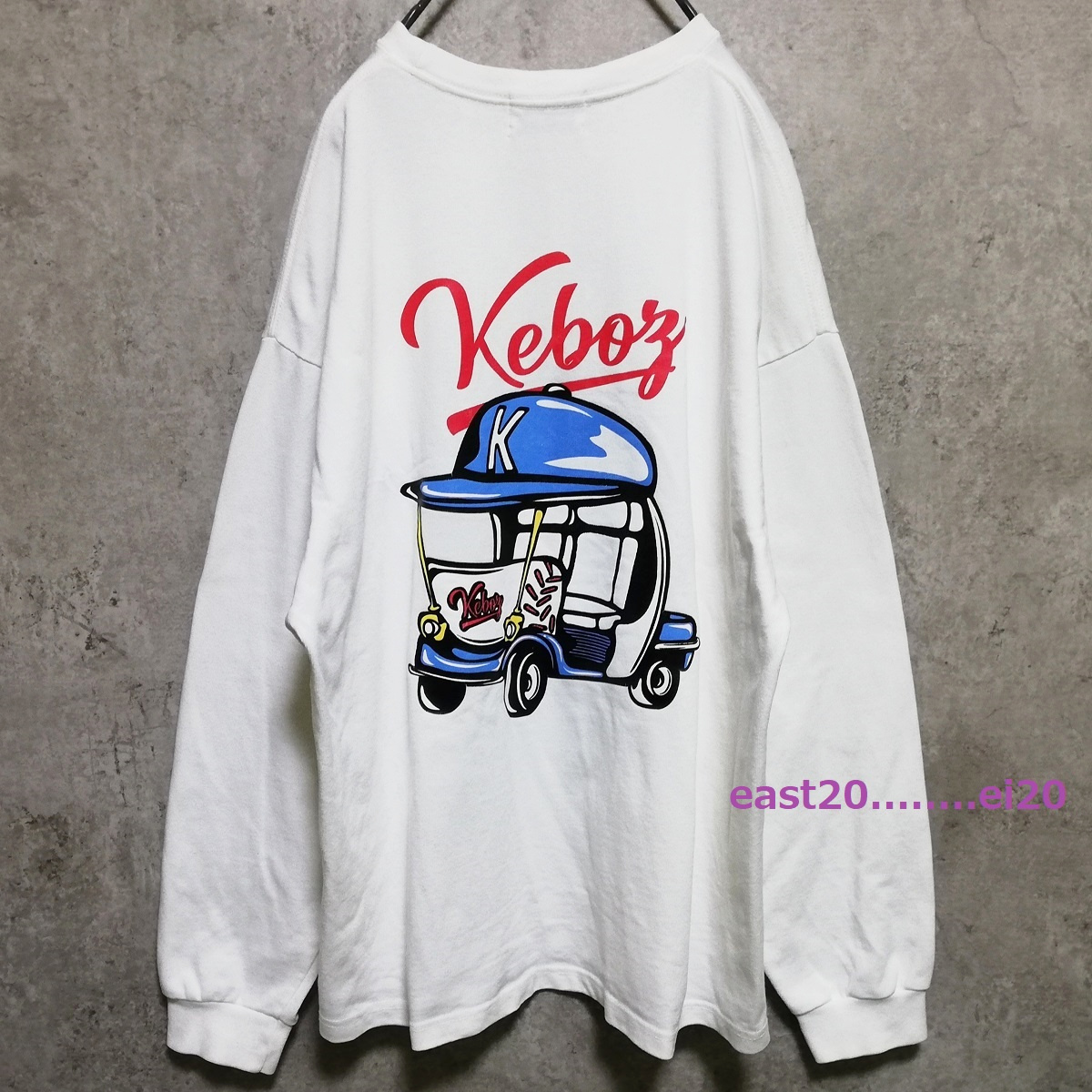 - keboz ケボズ リリーフカー 両面プリント 肉厚 度詰め コットン メンズ ウェア 長袖 Tシャツ M 白 厚手 ロンT 野球 ベースボール 送料無料