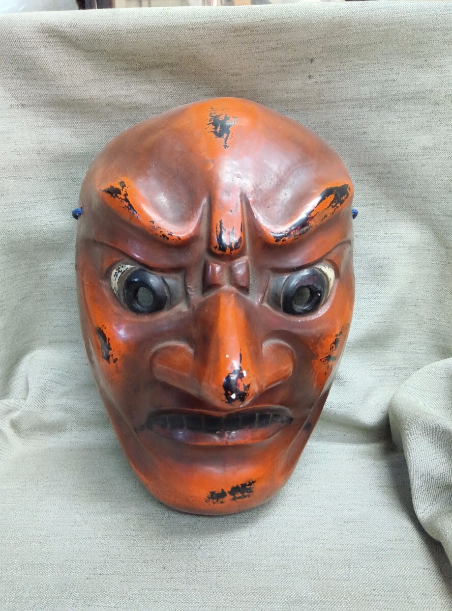 - 金の鈴 古いお面 乾漆 散手面 舞楽面 神楽面 時代物