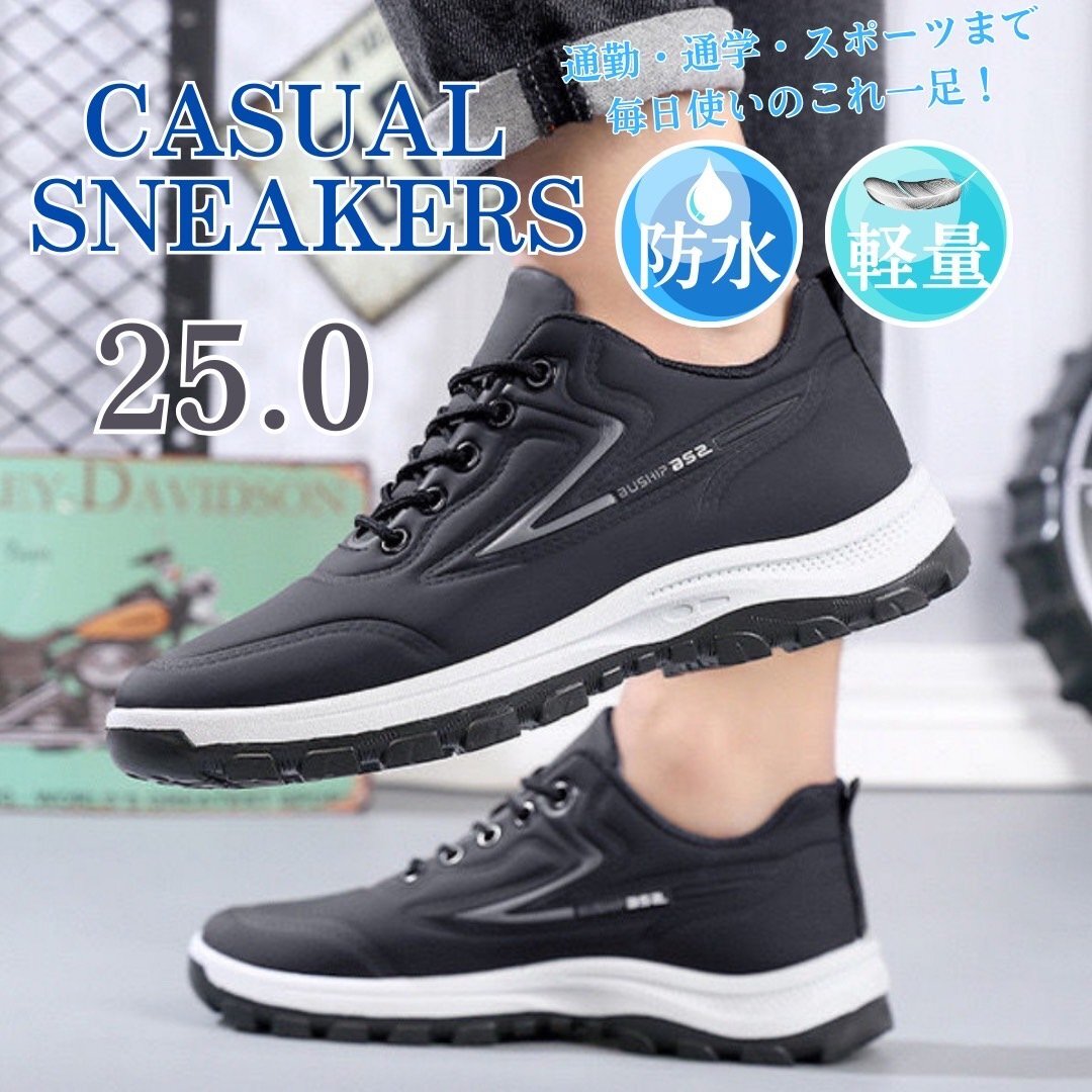 - スニーカー メンズ レザーシューズ 合革 紳士靴 防水 カジュアル 通勤 通学 履きやすい 滑りにくい グレー 25.0