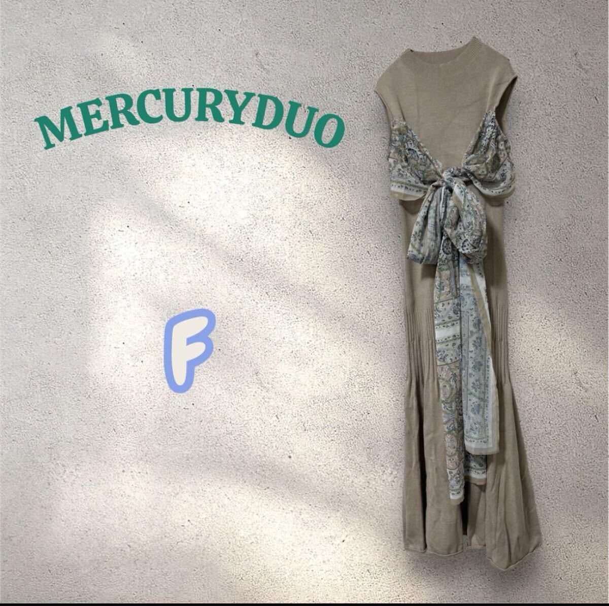 > MERCURYDUO マーキュリーデュオスカーフビスチェ付ニットロングワンピース