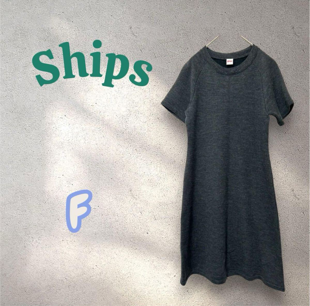 - Ships シップス ダークグレー ウール混 半袖カットソーワンピース