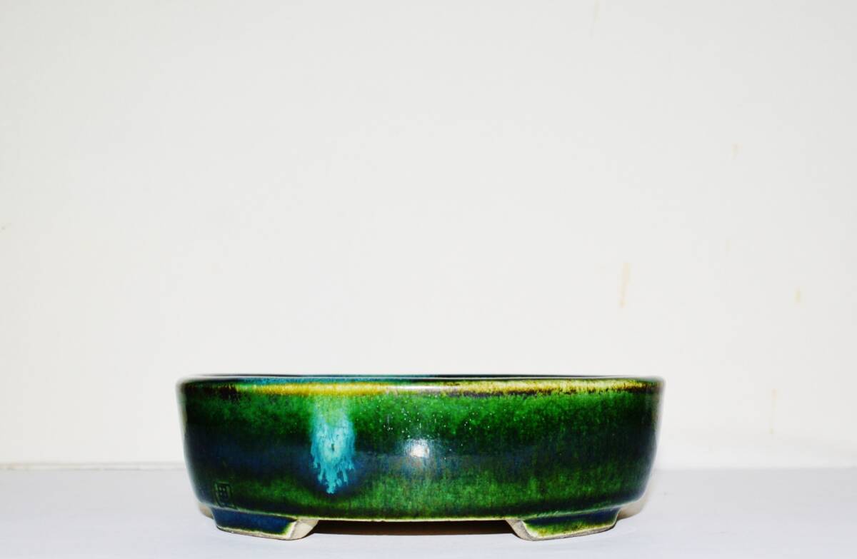 - 人気品薄和鉢作家 「寺畑さとみ(加藤里美)」 寺畑陶園 窯変織部釉に白釉 切立小判形の鉢