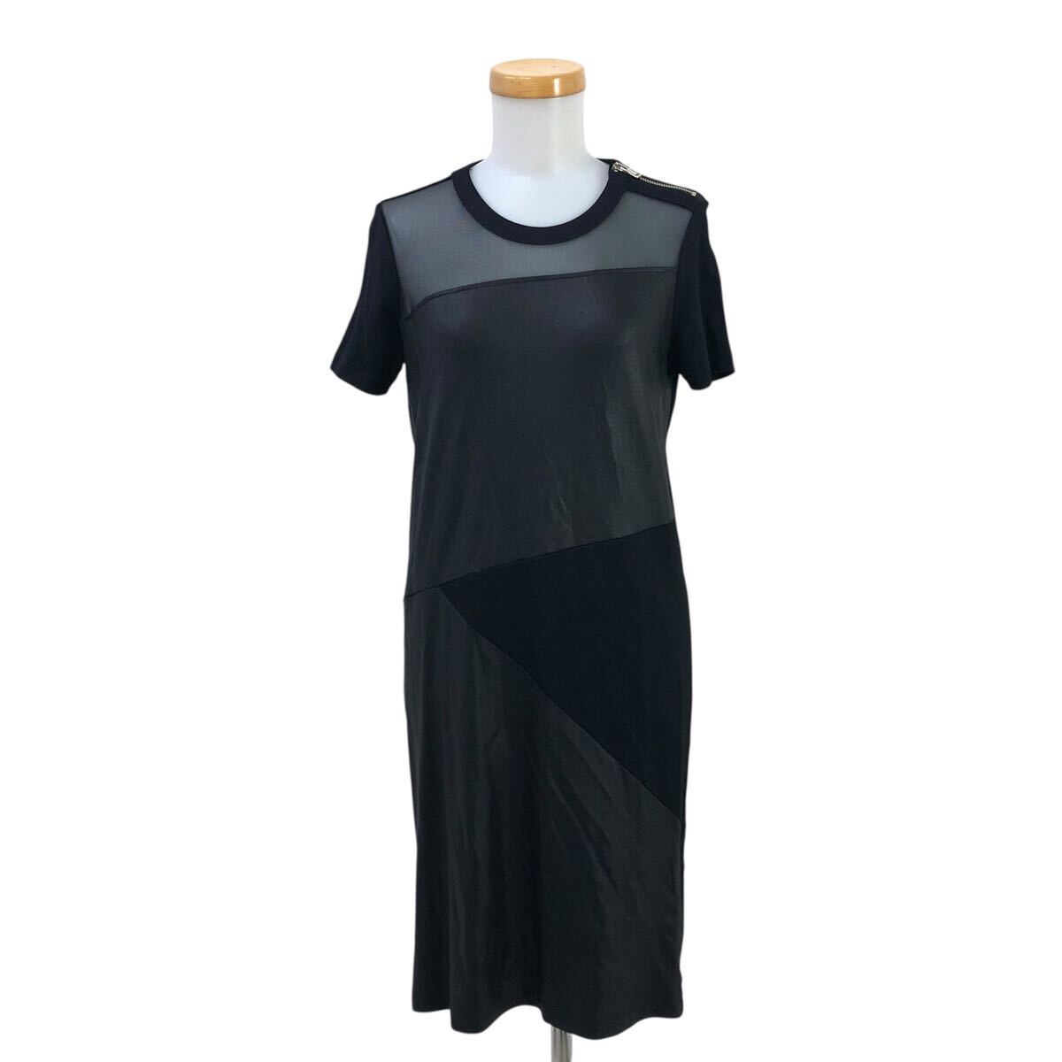 > 9Nm325-58 イタリア製 DIESEL BLACKGOLD ディーゼルブラックゴールド メッシュ 異素材 切り替え 半袖 カットソー ワンピース ブラック 38