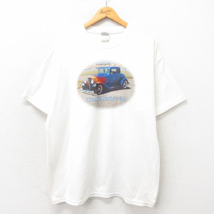- XL/古着 半袖 ビンテージ Tシャツ メンズ 00s ホットロッド 大きいサイズ クルーネック 白 ホワイト 25may30 中古