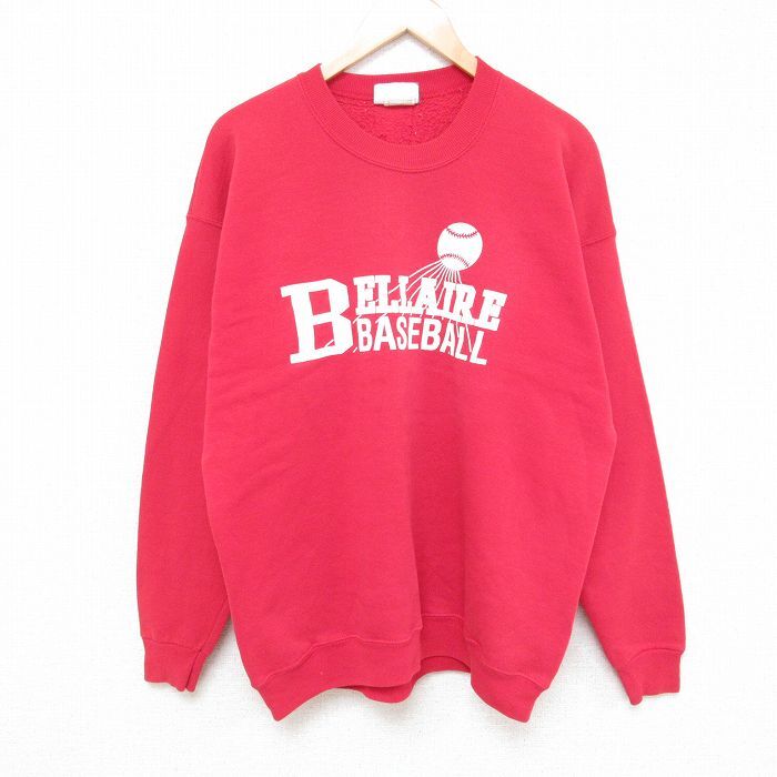 > L/古着 リー Lee 長袖 スウェット メンズ 90s ベースボール クルーネック 赤 レッド 24oct07 中古 スエット トレーナー トッ