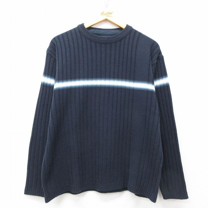 > L/古着 FADED GLORY 長袖 セーター メンズ アクリル クルーネック 濃紺 ネイビー 25mar27 中古 ニット トップス