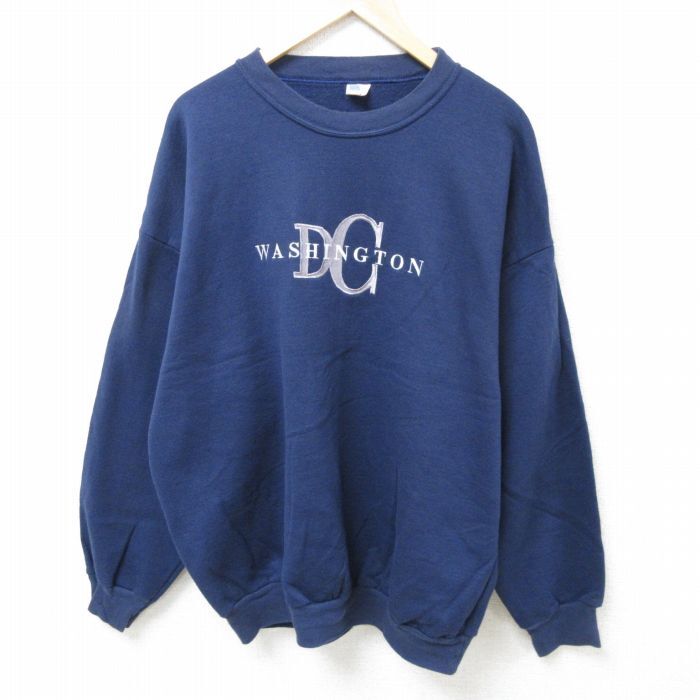 - XL/古着 長袖 スウェット メンズ 00s ワシントンDC 刺繍 大きいサイズ コットン クルーネック 紺 ネイビー 24oct08 中古 ス