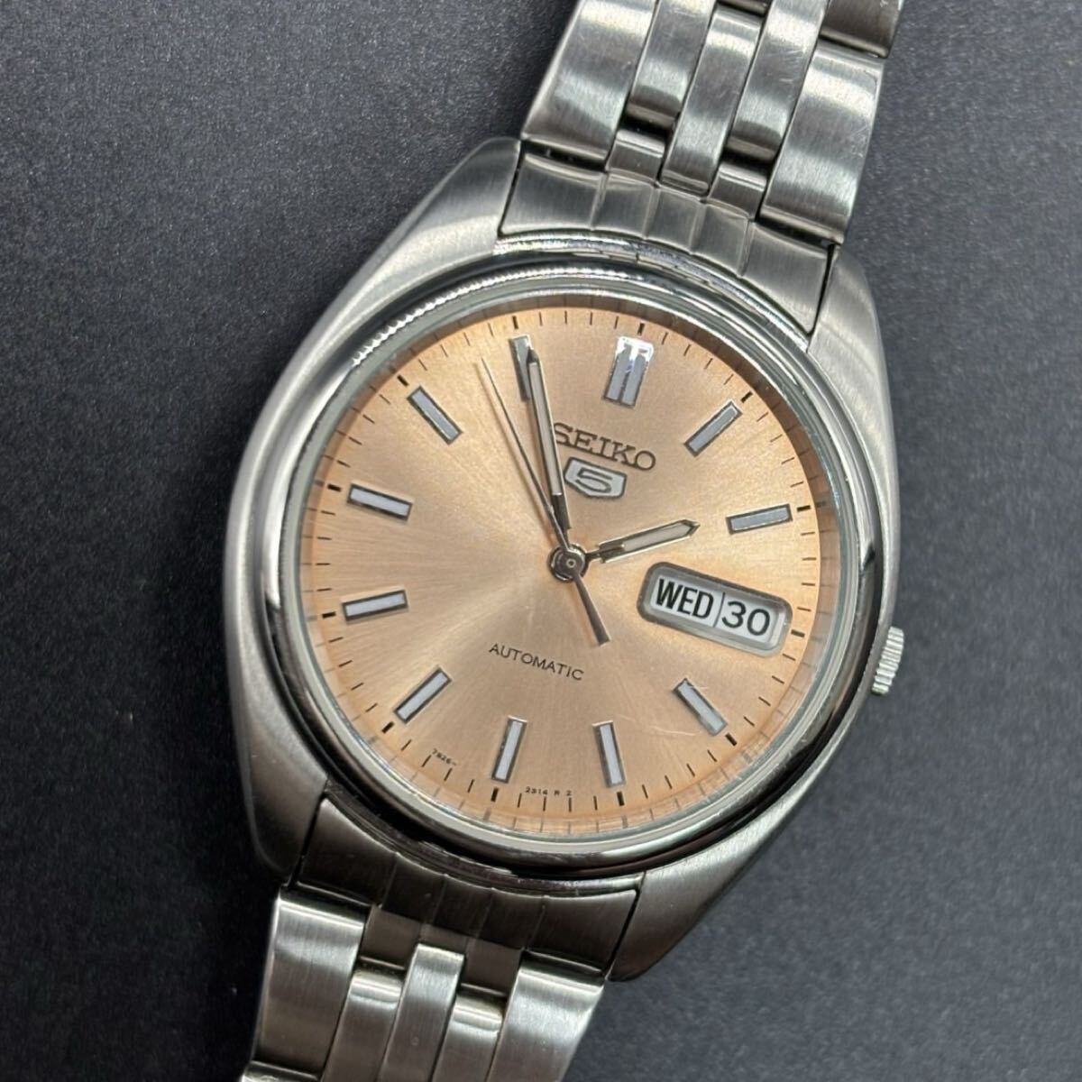 - 希少 SEIKO5 セイコー5 サーモンピンク メンズ 腕時計 裏スケ 自動巻き