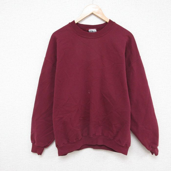 > XL/古着 ディスカス 長袖 スウェット メンズ 00s 無地 クルーネック エンジ 25apr14 中古 スエット トレーナー トップス