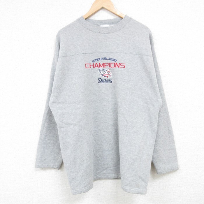 > L/古着 長袖 スウェット メンズ 90s NFL ニューイングランドペイトリオッツ 刺繍 クルーネック グレー 霜降り アメフト スー