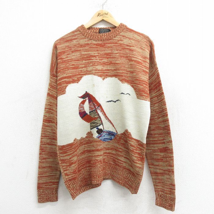 - L/古着 長袖 セーター メンズ 80s ヨット アクリル クルーネック エンジ 24sep25 中古 ニット トップス