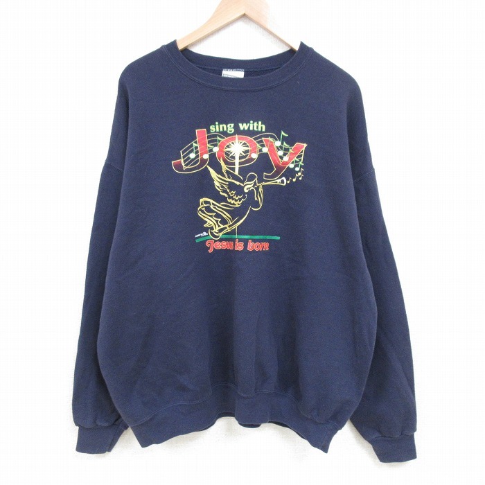 - XL/古着 リー 長袖 スウェット メンズ 00s JOY 大きいサイズ クルーネック 紺 ネイビー 25apr21 中古 スエット トレーナー