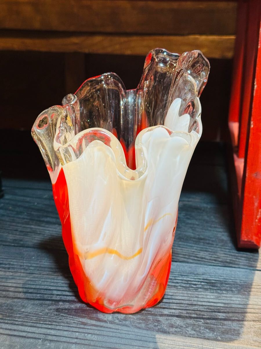 昭和 レトロ マーブル フラワーベース 花瓶 ガラス レッド ホワイト アンティーク 赤 白
