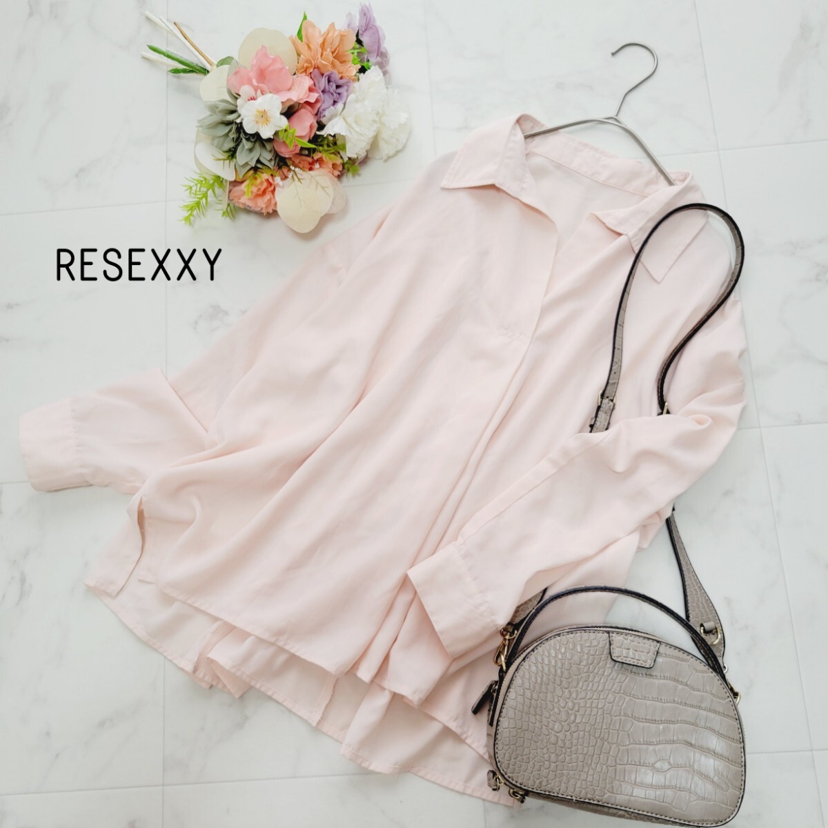 - RESEXXY リゼクシー ライトピンク スキッパーブラウス 長袖ブラウス シアー 手洗い可能 フリーサイズ