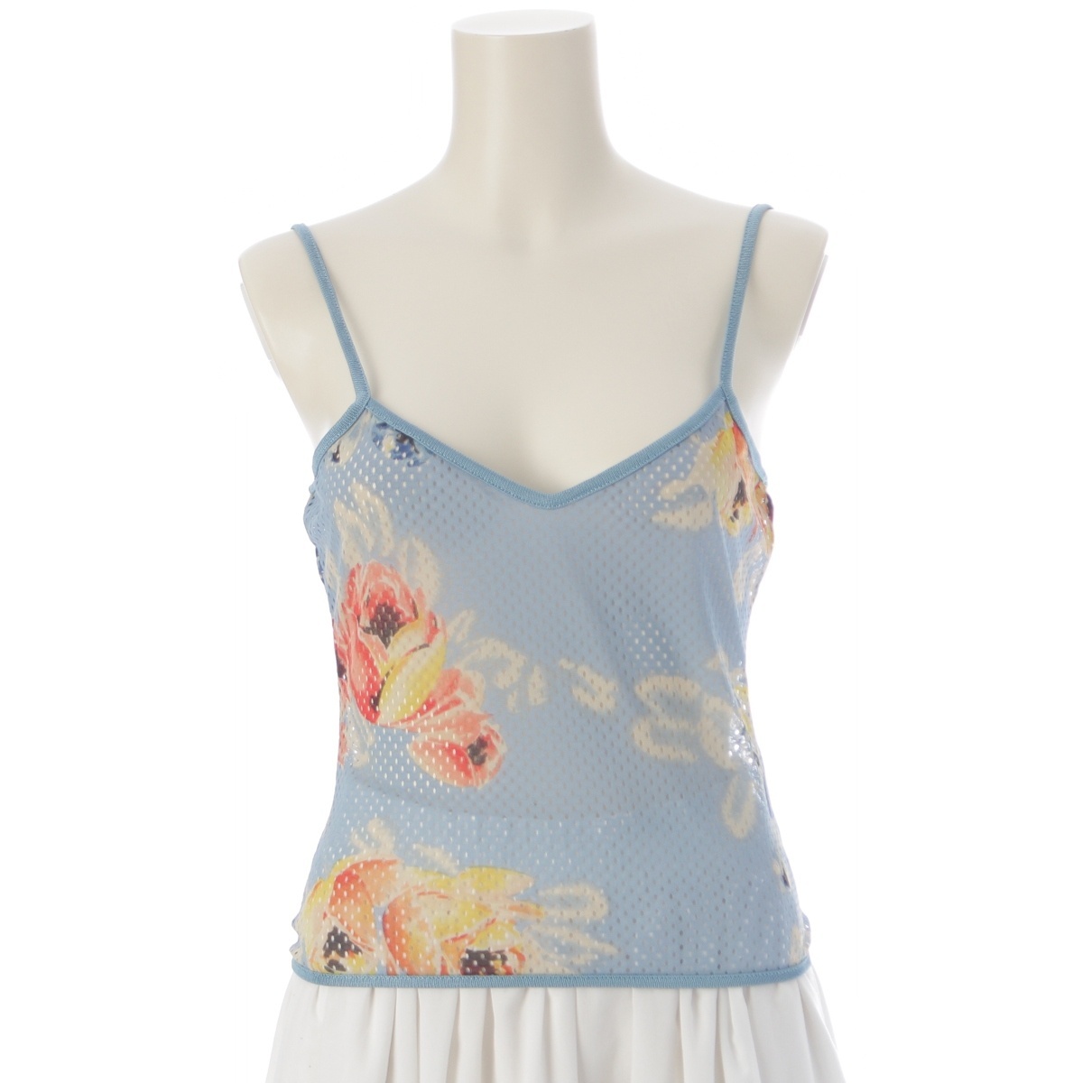 - ディオール 2001 ナイロン アーカイブ ガリアーノ期 BLUE FLOWER メッシュ タンクトップ キャミソール ブルー マルチカラー F38【中古】