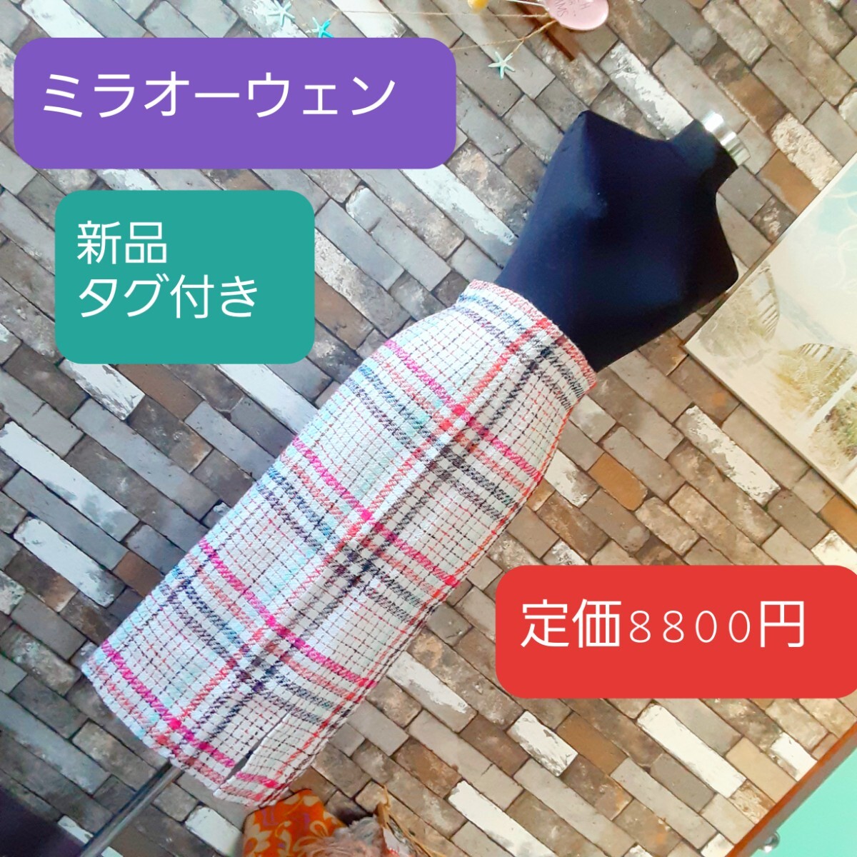 - ロングスカート タイト ツイード チェック ミラオーウェン 白 ピンク 紺 水色