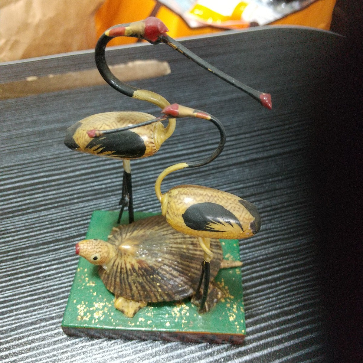 - 昭和レア物縁起物唐津鶴亀貝特殊工芸金箔振りかけ仕上げ工芸品レア物希少商品です。 置物 アンティーク