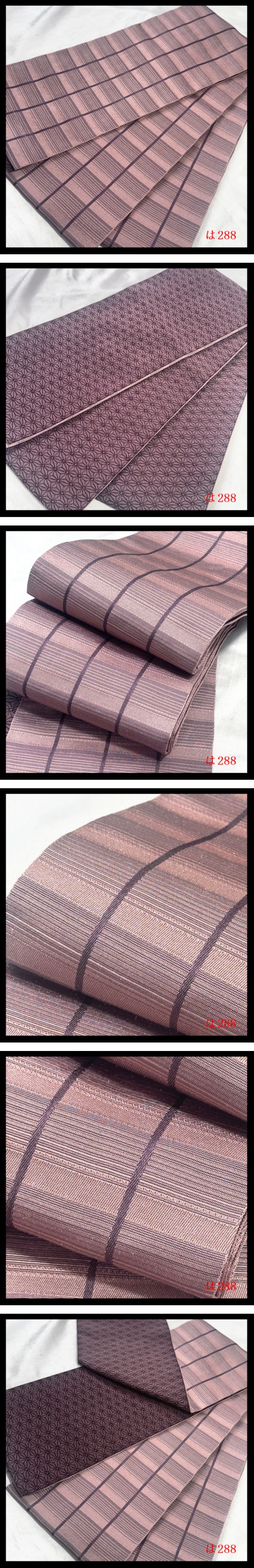 > 【は288】厳選美品 半幅帯 小袋帯浴衣帯 麻の葉 間道 両面 蘇芳香色地 ◇検◇着物簪袋帯名古屋帯和装小物帯締め