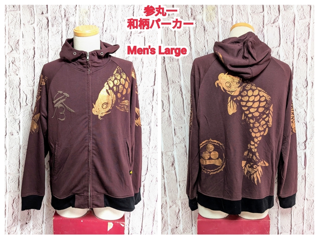 - ★送料無料★ 参丸一 ジップパーカー スウェットパーカー 参丸一 和柄 パーカー Large