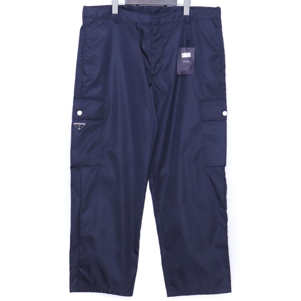 > 未使用 PRADA RE-NYLON トライアングルロゴプレート ナイロンカーゴパンツ サイズ52 ネイビー SPH243 S231 1WQ8 プラダ 三角 リナイロン