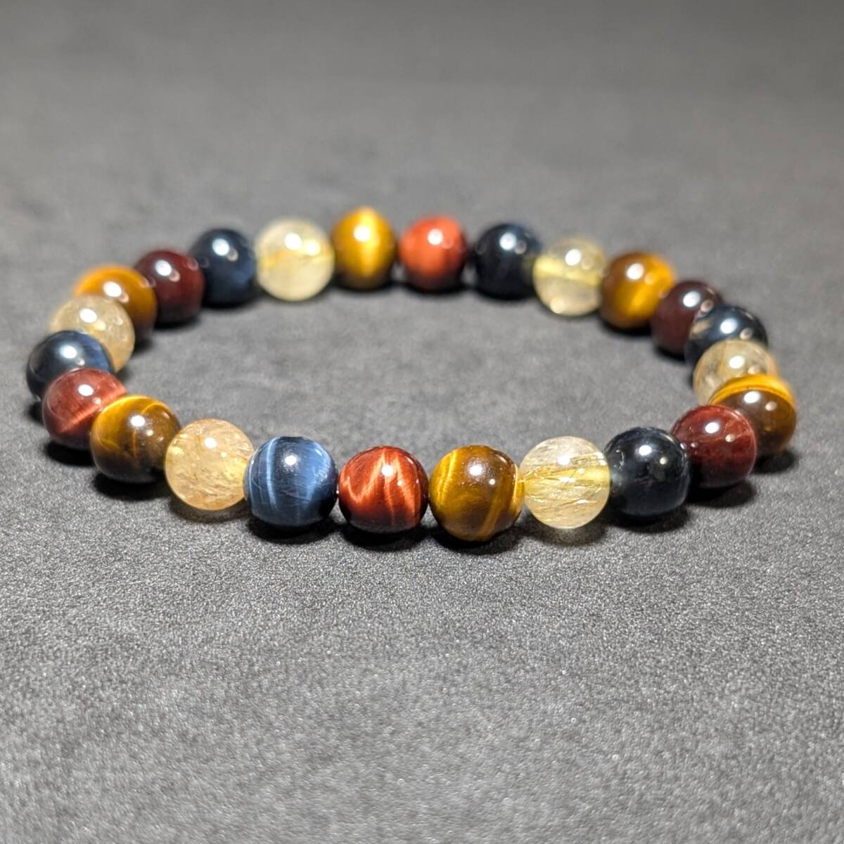 - 金運・仕事運・勝負運を一つに タイチンルチル 3カラー タイガーアイ ブレスレット 8mm 開運 天然石 パワーストーン 数珠 ギフト 贈り物