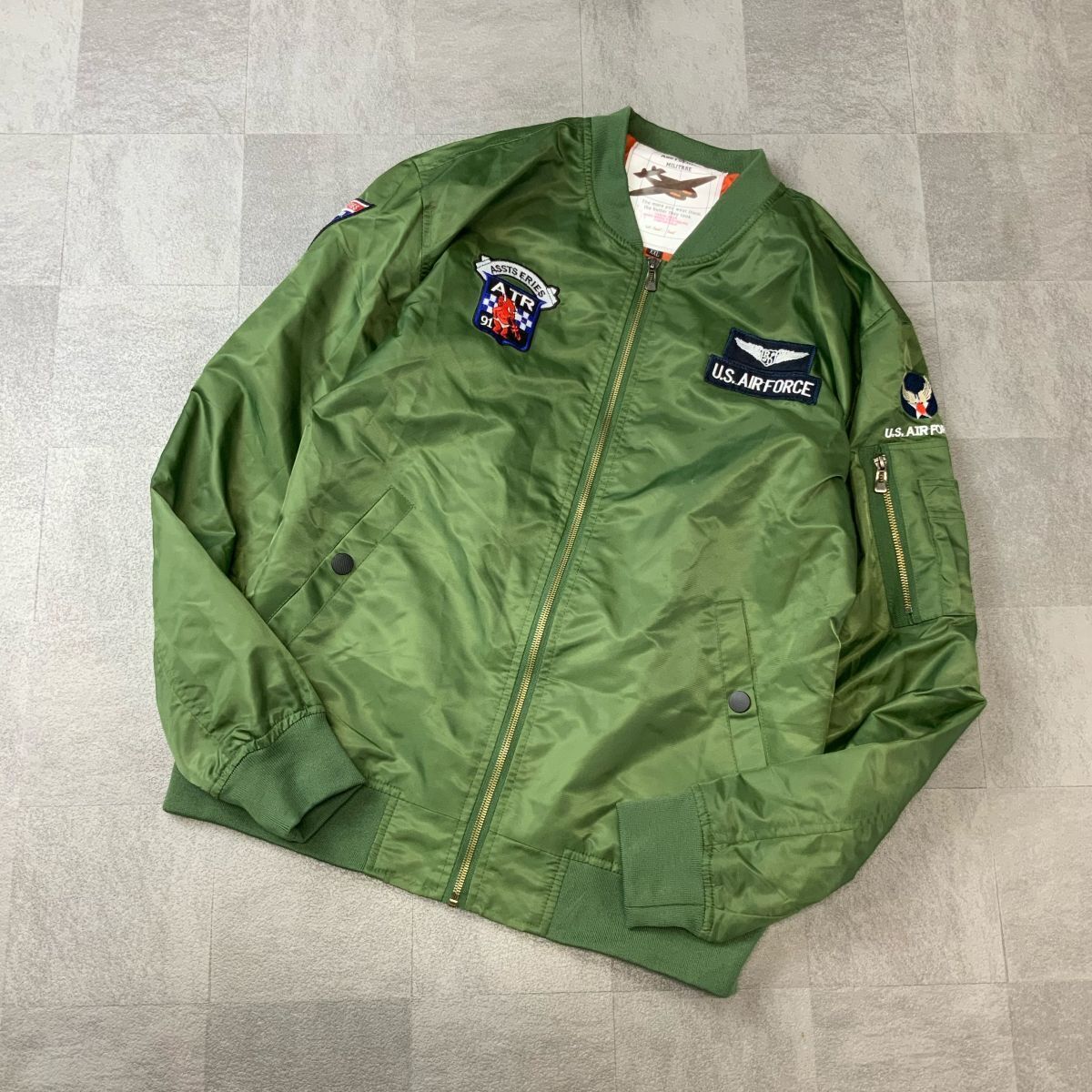 - 美品 ASSTSERIES MILLTARE MA1 ミリタリージャケット メンズ XXL カーキ オレンジ