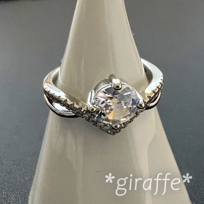 - A497 匿名配送 指輪 レディース リング ジルコニア シルバー フリーサイズ サイズ調節可能 4爪 v字 交差