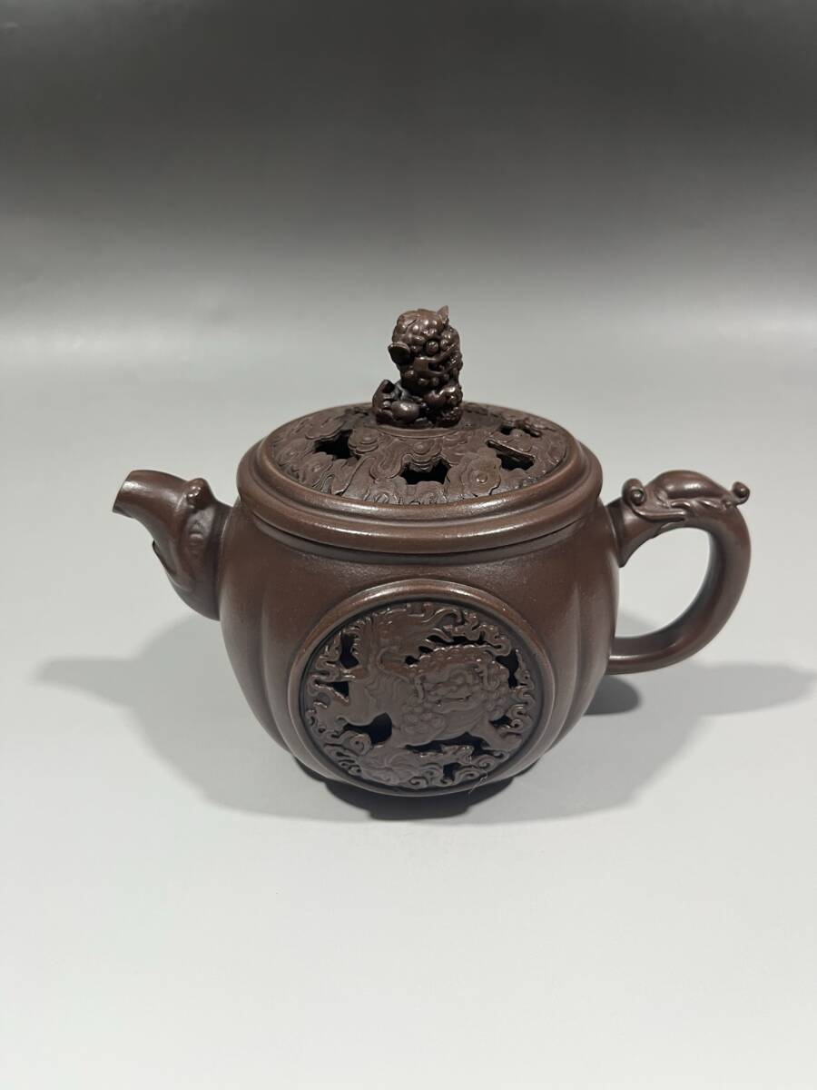- 友人旧蔵 古原鉱紫泥製 獅尊壺 陳鳴遠款 紫砂壺 茶壺 精品壺 急須 煎茶道具 茶道具 時代物 古董品 骨董 旧家藏出 唐物 中国古玩 古美術品