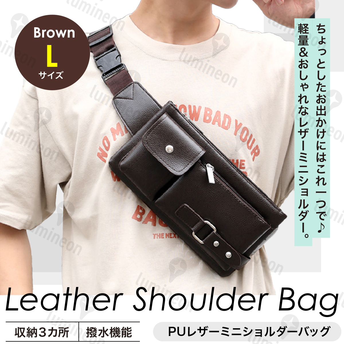 - ボディ バッグ ショルダー スマホ ポーチ ウエスト メンズ レザー 大容量 小物入れ おしゃれ 斜め掛け 肩掛け ヒップバッグ 茶 g176bb 2