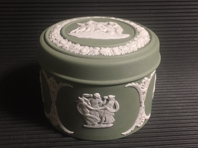 - ◎ウェッジウッド グリーンジャスパー 円形蓋物◎e43