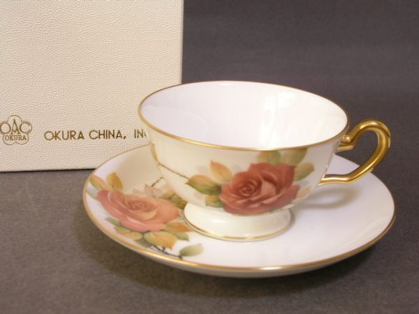- ◎新品同様 大倉陶園【手描き】クラシックローズ カップ&ソーサー◎箱付