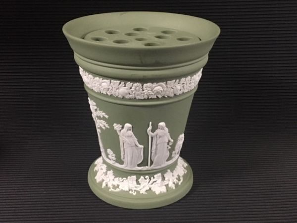 - ◎ウェッジウッド グリーンジャスパー 素敵なローズボール 花瓶◎y12