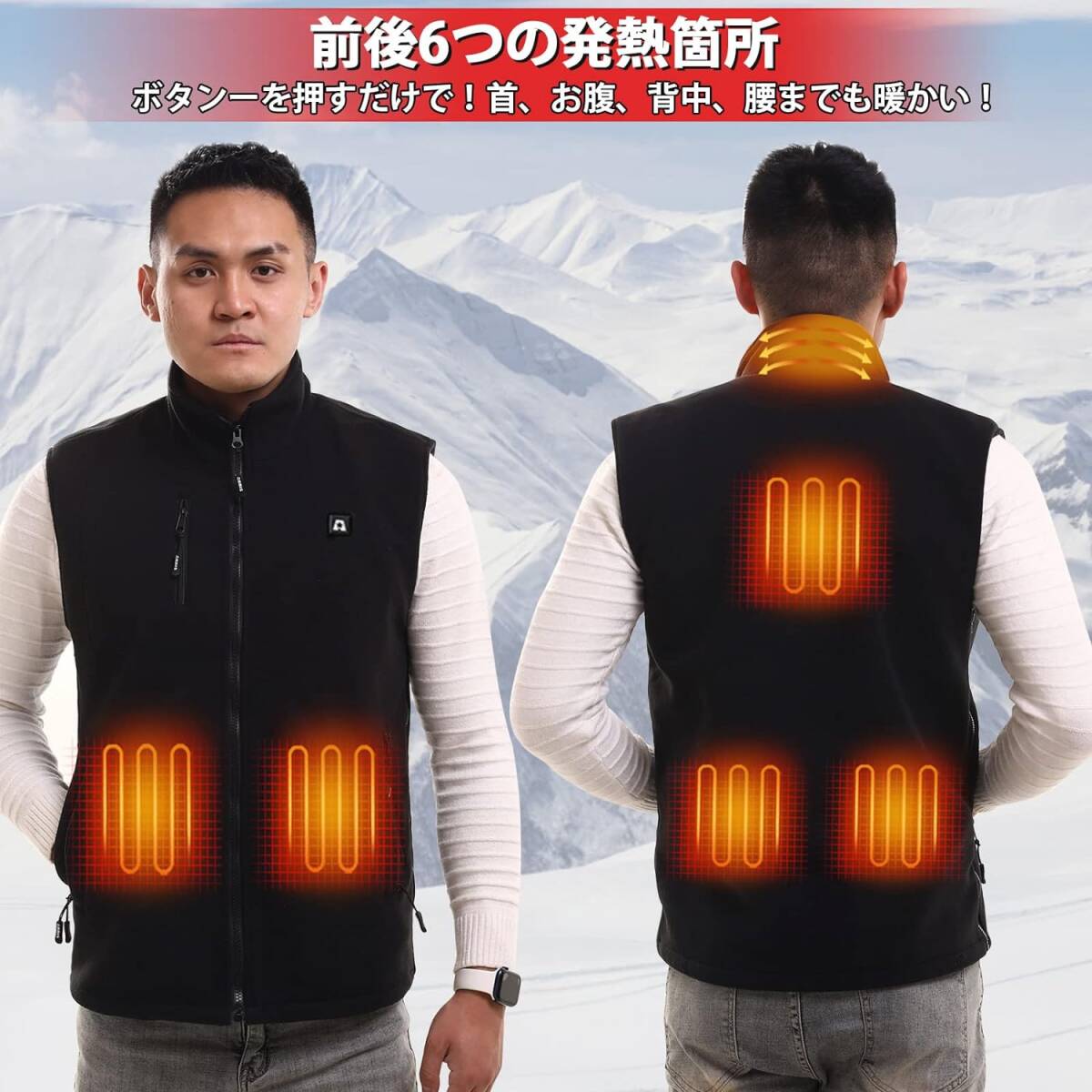 - コンパクト フリース電熱ベスト【フリーサイズ・5段階調温】極寒対策・速暖防寒ウェ
