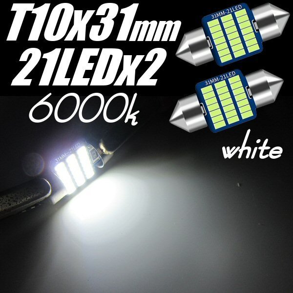 > 12V 21連 SMD T10×31mm 2個 セット 白 6000k 無極性 ホワイト LEDバルブ まくら球 ルームランプ ヒューズ型 室内灯 耐電圧 送料無料 E