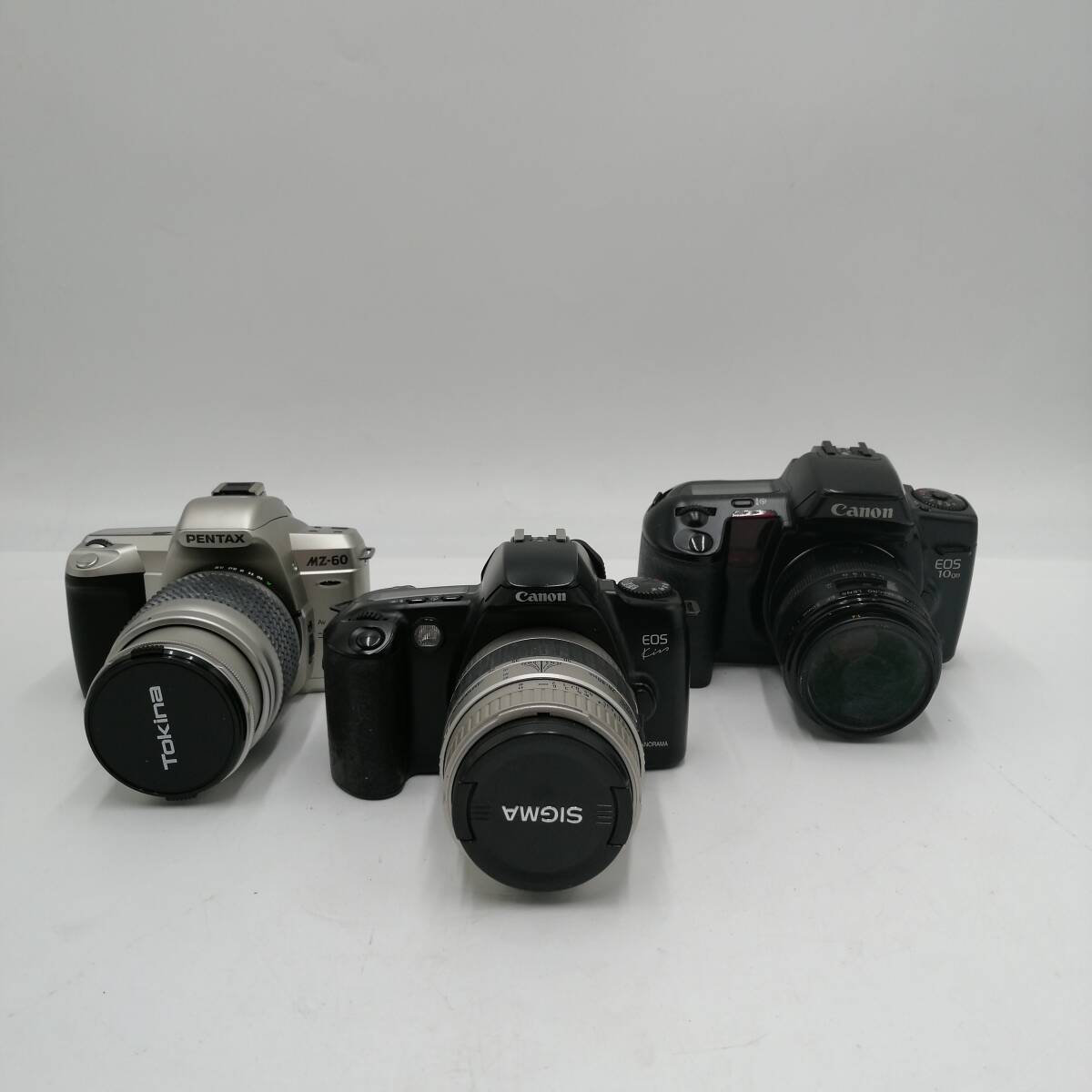 - H1438 一眼レフ カメラ オートフォーカス 3点 まとめ売り Canon EOS Kiss / キャノン EOS 10QD / PENTAX ペンタックス MZ-60