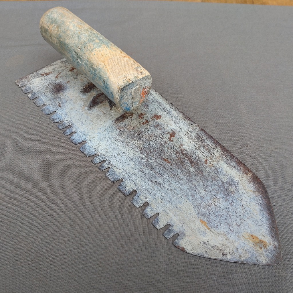 - クシ鏝 特殊鏝 鏝の全長約285㎜ 最大幅約104㎜ こて コテ 左官鏝 左官道具 日本製 【4570】
