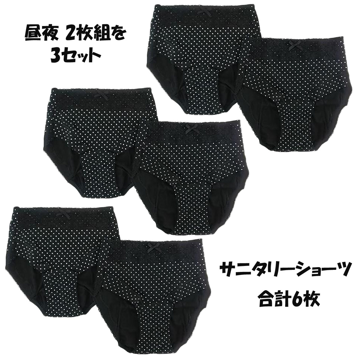 - サニタリーショーツ 深履きタイプ お得な3セット 合計6枚 綿混2重構造 昼夜 2枚組 LL ブラック
