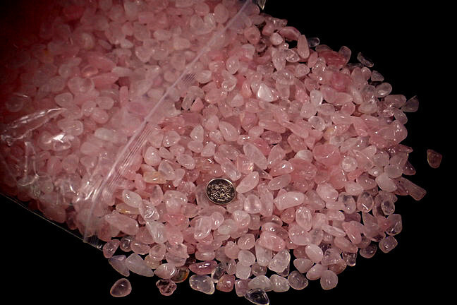 ◆2キロ入り★天然ローズクォーツ水晶チップ167E11-12小(5mm-7mm)